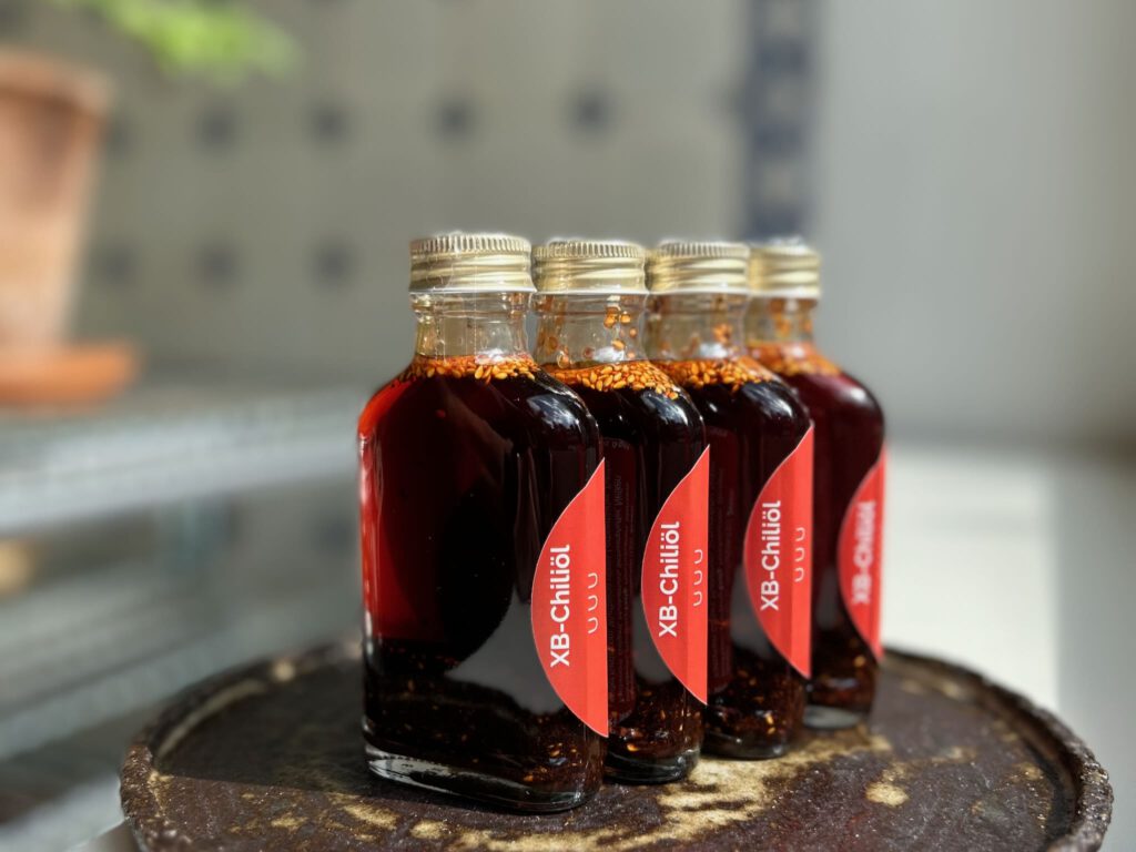 Spicy is easy – but our chili oil is more. More resonant chord than alarm bell, more warming glow than a flickering flash. Our XB chili oil follows the tradition of China’s Northwest (西北 | xīběi | XB) and features, in addition to the finest chili flakes from the area, a selection of ingredients whose flavors linger long after the heat fades: cloves, nutmeg, Sichuan pepper, Tsaoko, a splash of rice vinegar, and sesame for its unmistakable roasted aromas. This harmonious blend enhances almost any dish.